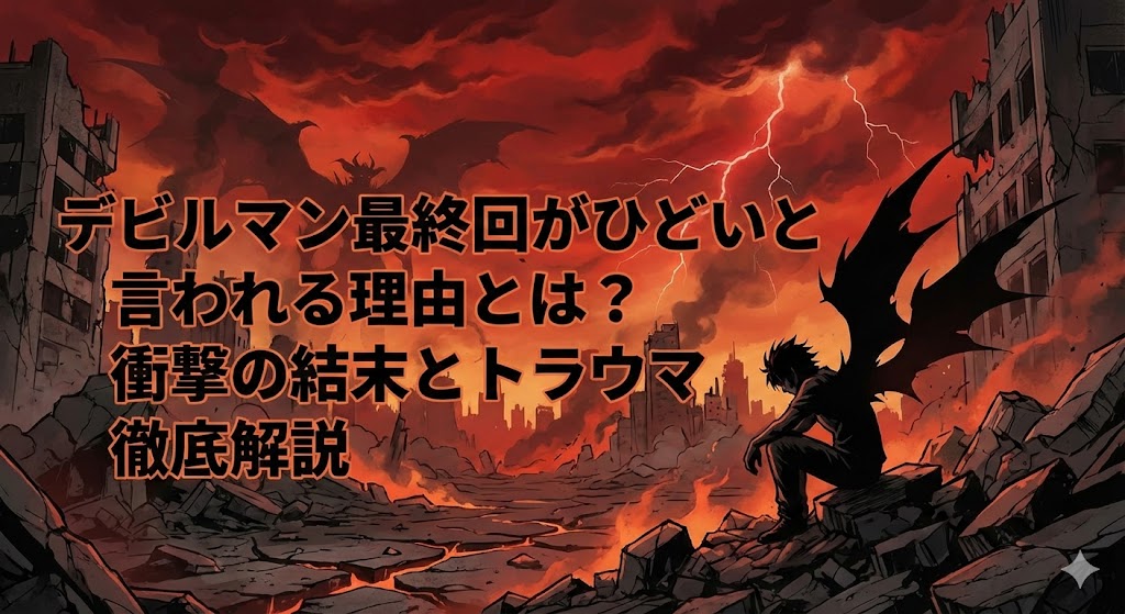 「デビルマンの最終回があまりにも救いがなくて、悲しくて、どうしてもひどいと感じてしまう」 この記事では、多くの読者がデビルマン最終回をひどいと感じる理由とその衝撃的な物語の内容を、事実に即して詳しく解説します。 この記事でわかること デビル... 漫画,アニメ