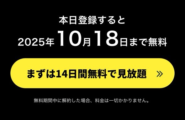 - 無料期間は「登録日を含む14日間」