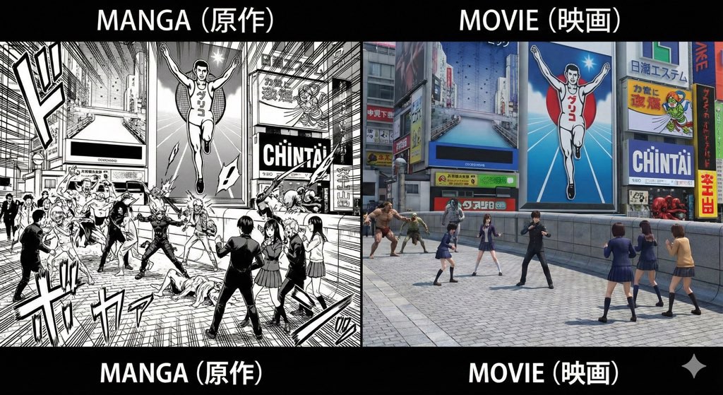 原作では玄野は物語の途中で死亡していますが、映画版では冒頭で玄野がリーダーとして戦い、死亡するシーンが描かれています。これにより、加藤がリーダーを引き継ぐ流れがよりドラマチックになっています。